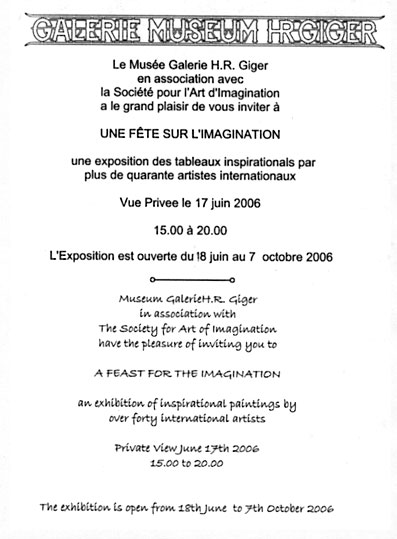 et jusqu’au 7 octobre 2006, a la galerie du Musee Giger a Gruyeres.